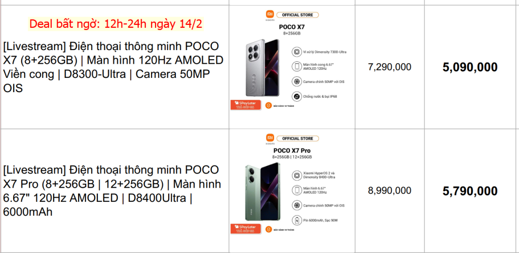 List Minh Tú ( Poco X7 pro trang 119): 👉 👉 https://bit.ly/MinhTuDealList1402– Thông tin: https://s.shopee.vn/5ptJV7uIZk